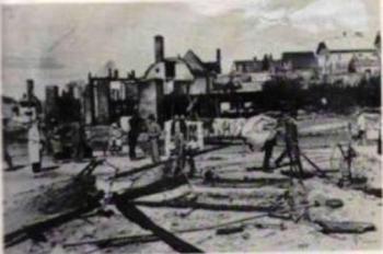 Štyri ráfy z kolies, niekoľko kúskov železa, to je voz, trochu sprehýbaného železa - to je šijací stroj, dve veľké kolesá vedľa seba - rezačka na sečku. A z úbohých dreveničiek trčia len peciská s dvoma rúrami. Niekde ešte hrnce na platni, niekde v rúre prázdna misa. Tam, kde boli obloky v stene, hromádka zliateho skla. A kde visela lampa, zohnuté plechové tienidlo.